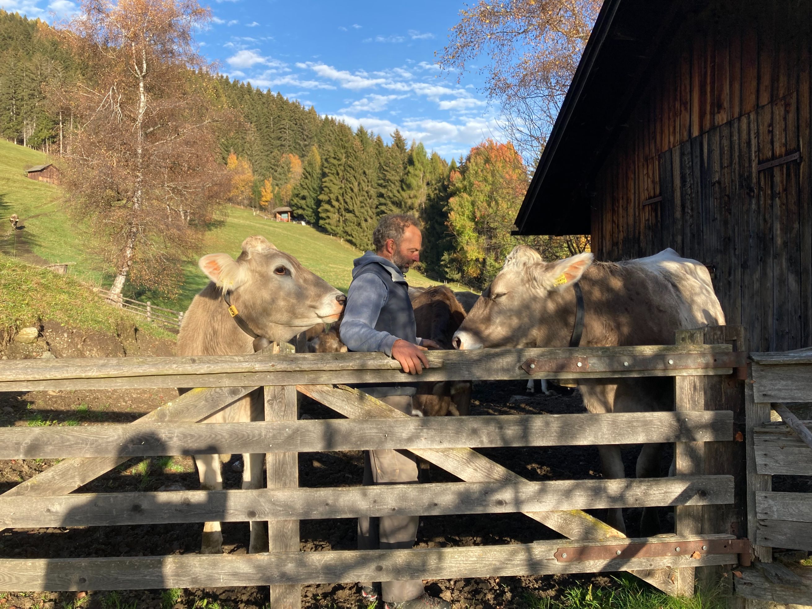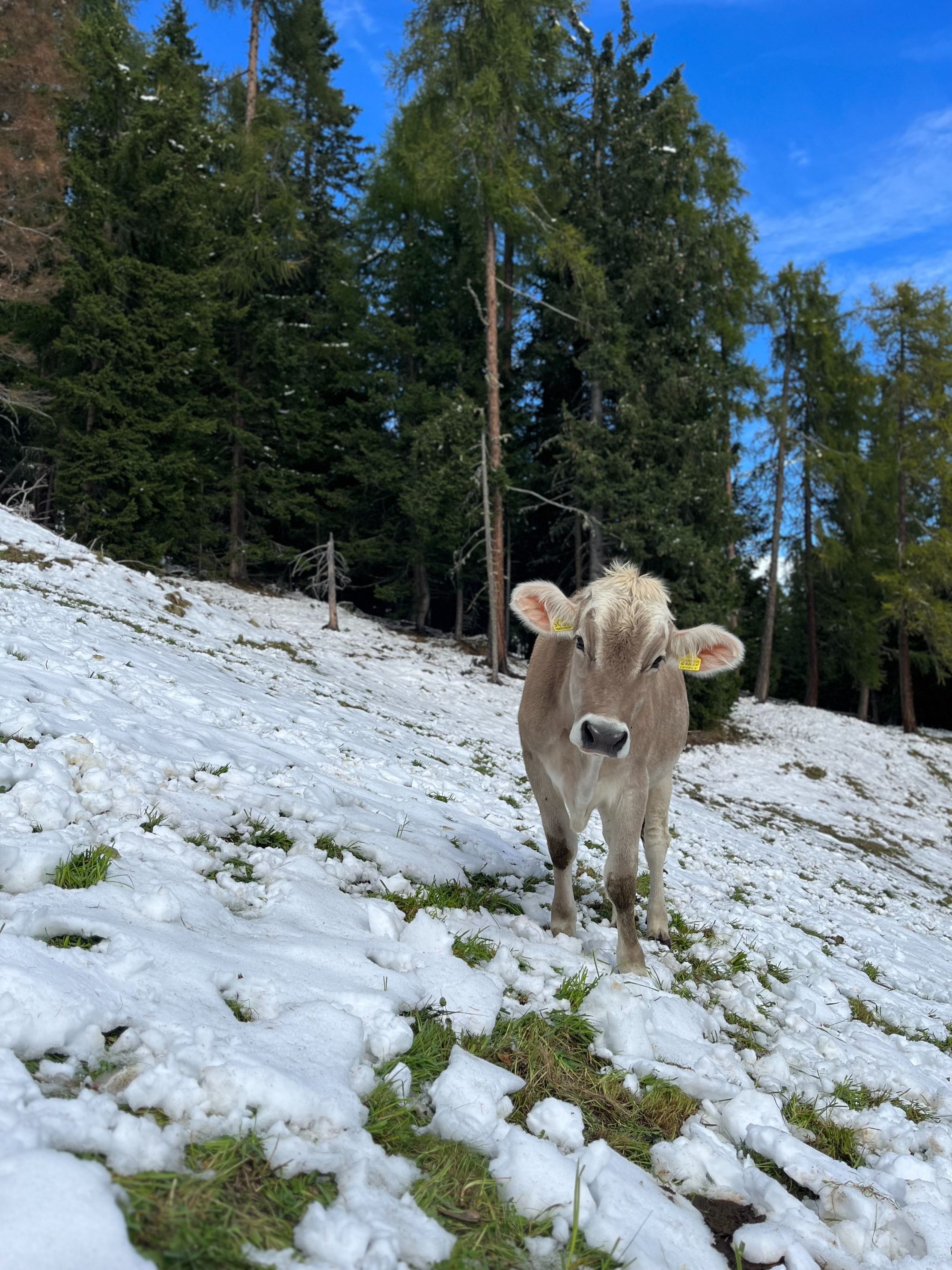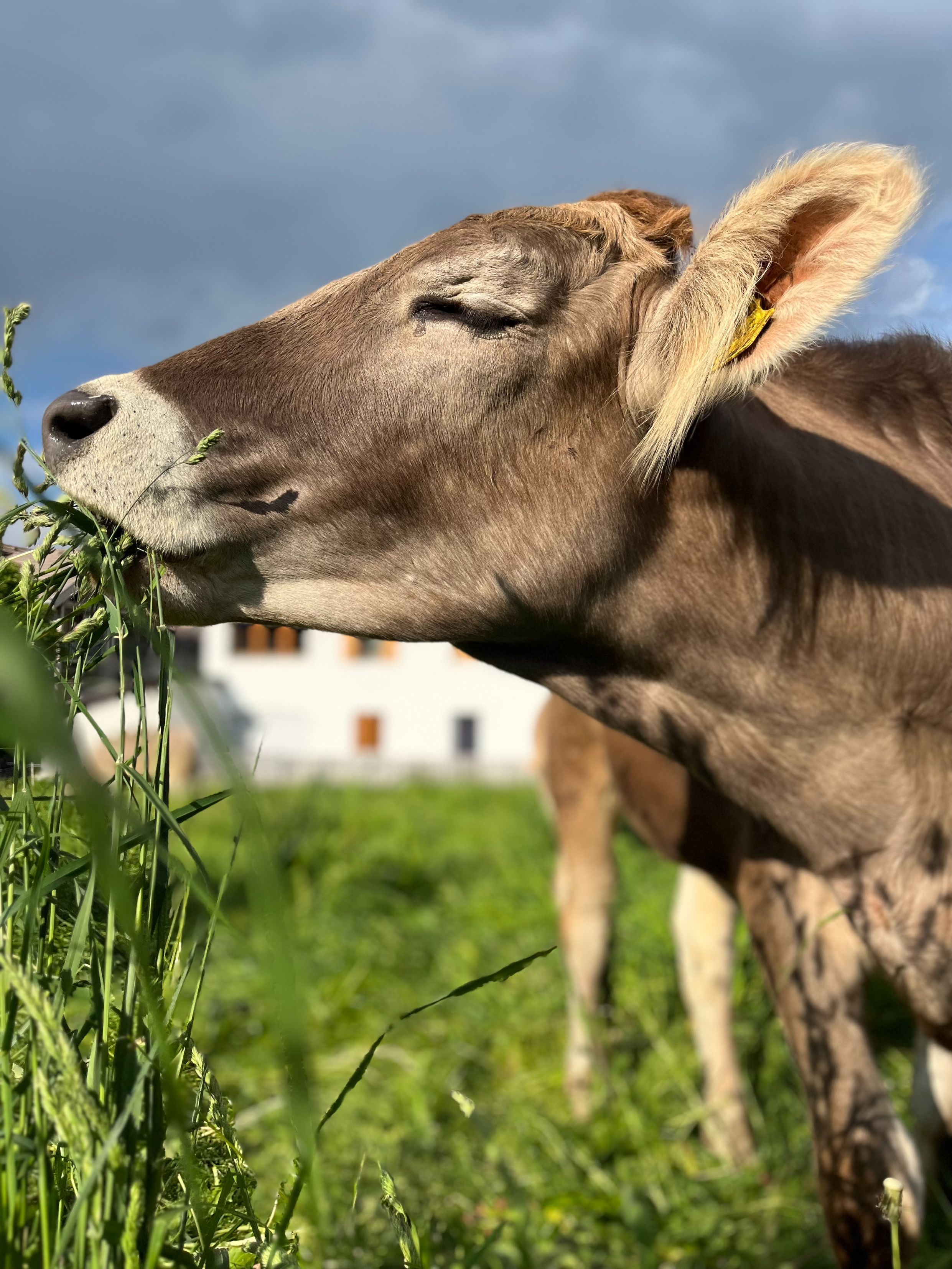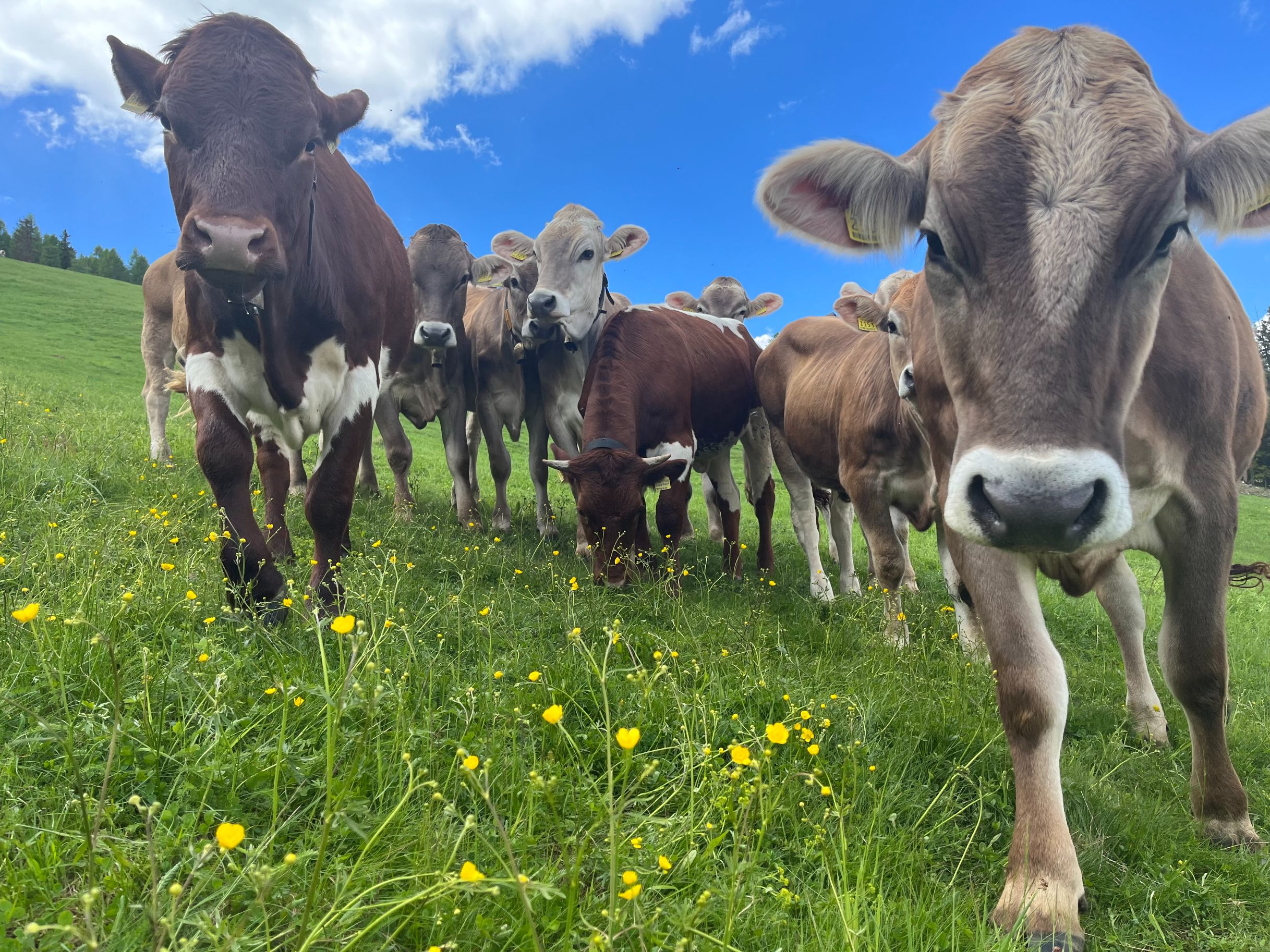 Unsere Kühe und Jungrinder weiden über die Sommermonate auf den Skipisten des Kronplatzes auf 1800m Höhe. Das Fleisch und die Kartoffeln, die wir in unserer Hütte servieren, stammen direkt von unserem Huiba Hof in Mitterolang - echter "Hof zu Tisch" Genuss.